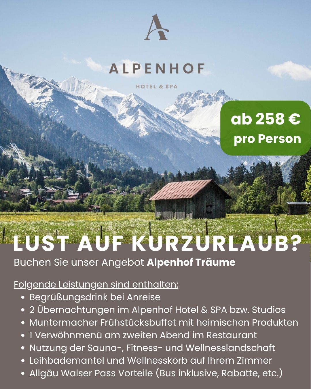 Herzlich willkommen im Alpenhof Oberstdorf Hotel & SPA, Ihrem Wellnesshotel im Allgäu. Inmitten der beeindruckenden Bergwelt der Allgäuer Alpen erwartet Sie ein Ort für echte Erholung, neue Energie und bewusste Auszeiten.