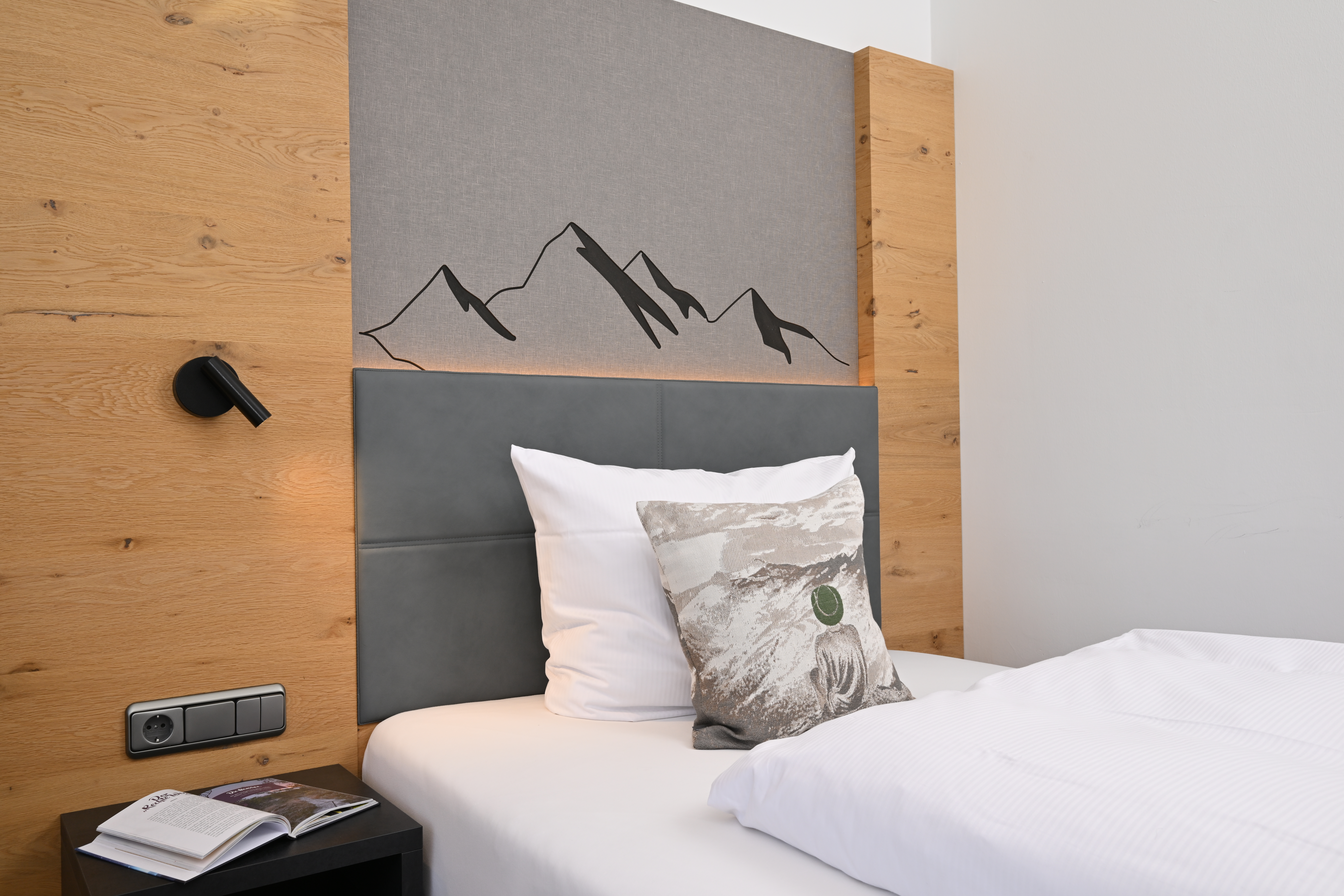 Unsere Einzelzimmer erfreuen Sie durch elegantes Flair im zeitlosen alpinen Stil.